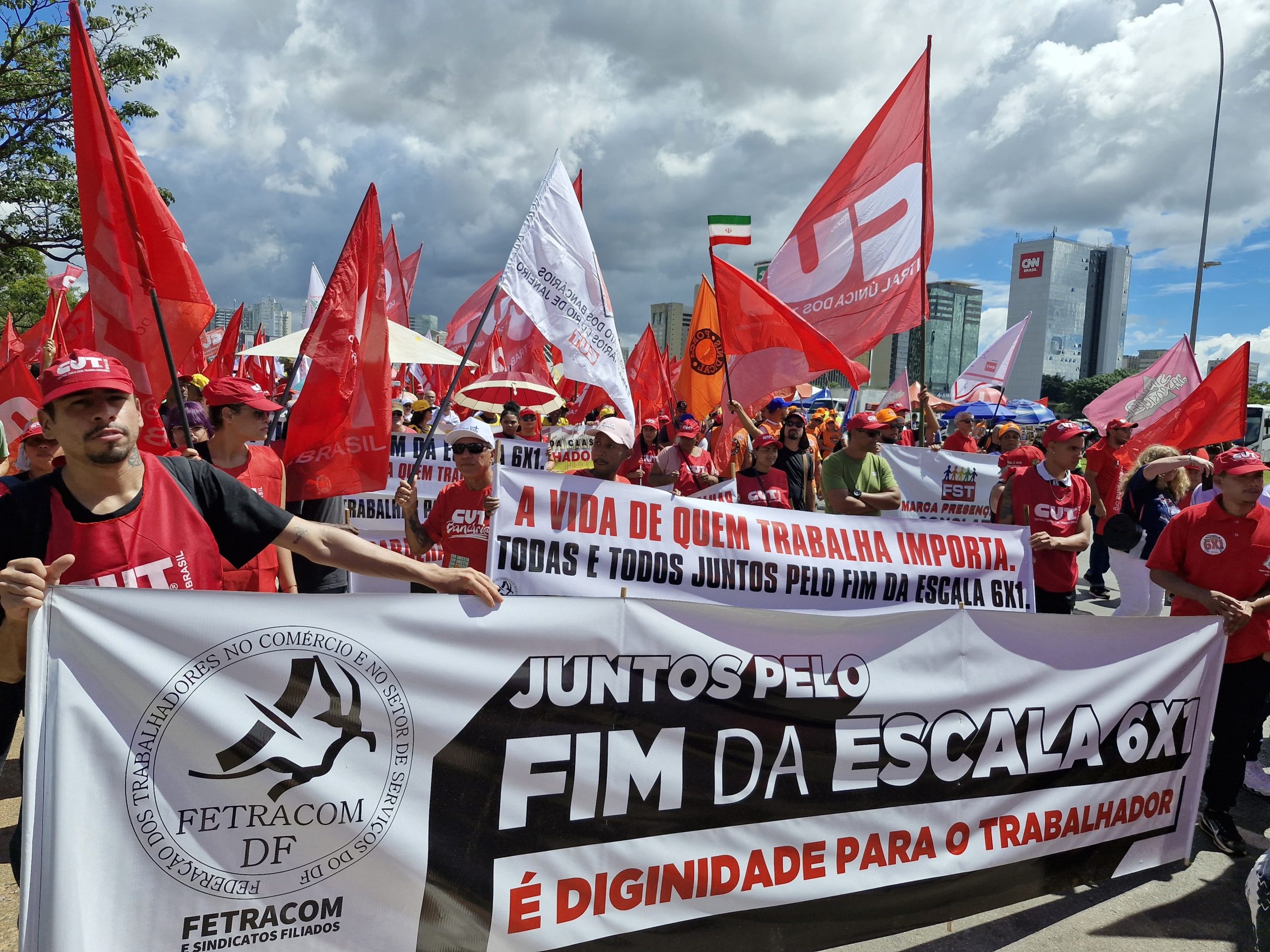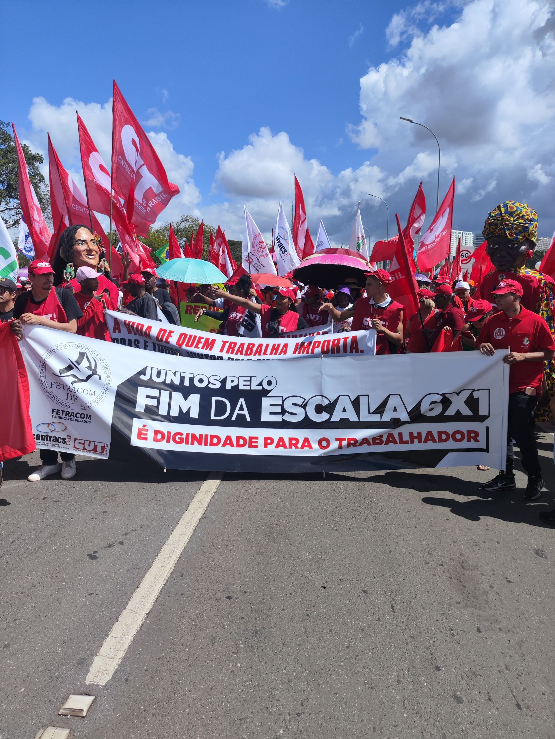 “A presença de trabalhadores e trabalhadoras de todo o Brasil mostra que a nossa pauta é coletiva e urgente. Estamos aqui para dizer que não queremos viver para trabalhar. Basta da escala 6X1, uma escala desumana que não passa de uma escravização moderna”, destacou.