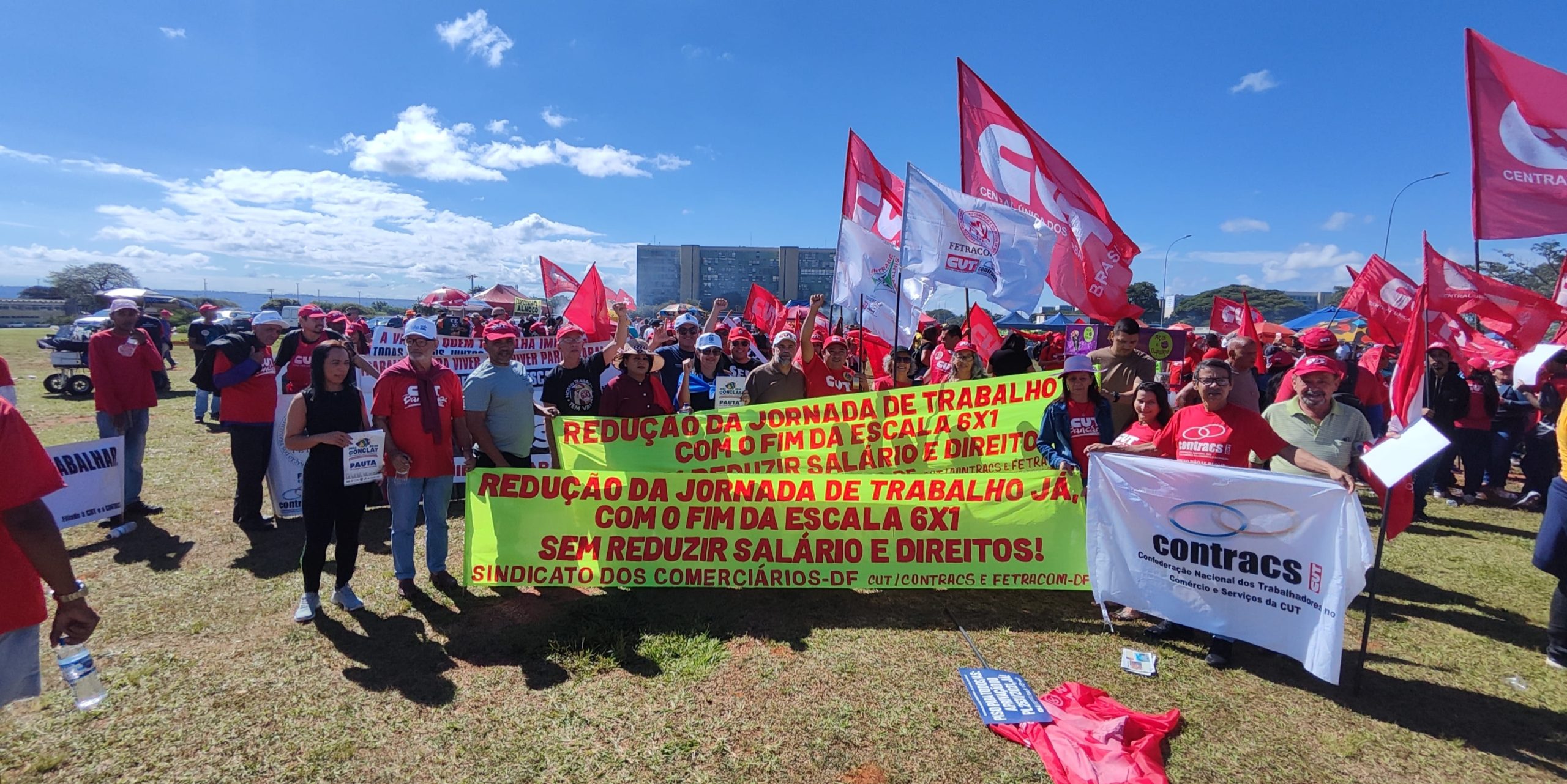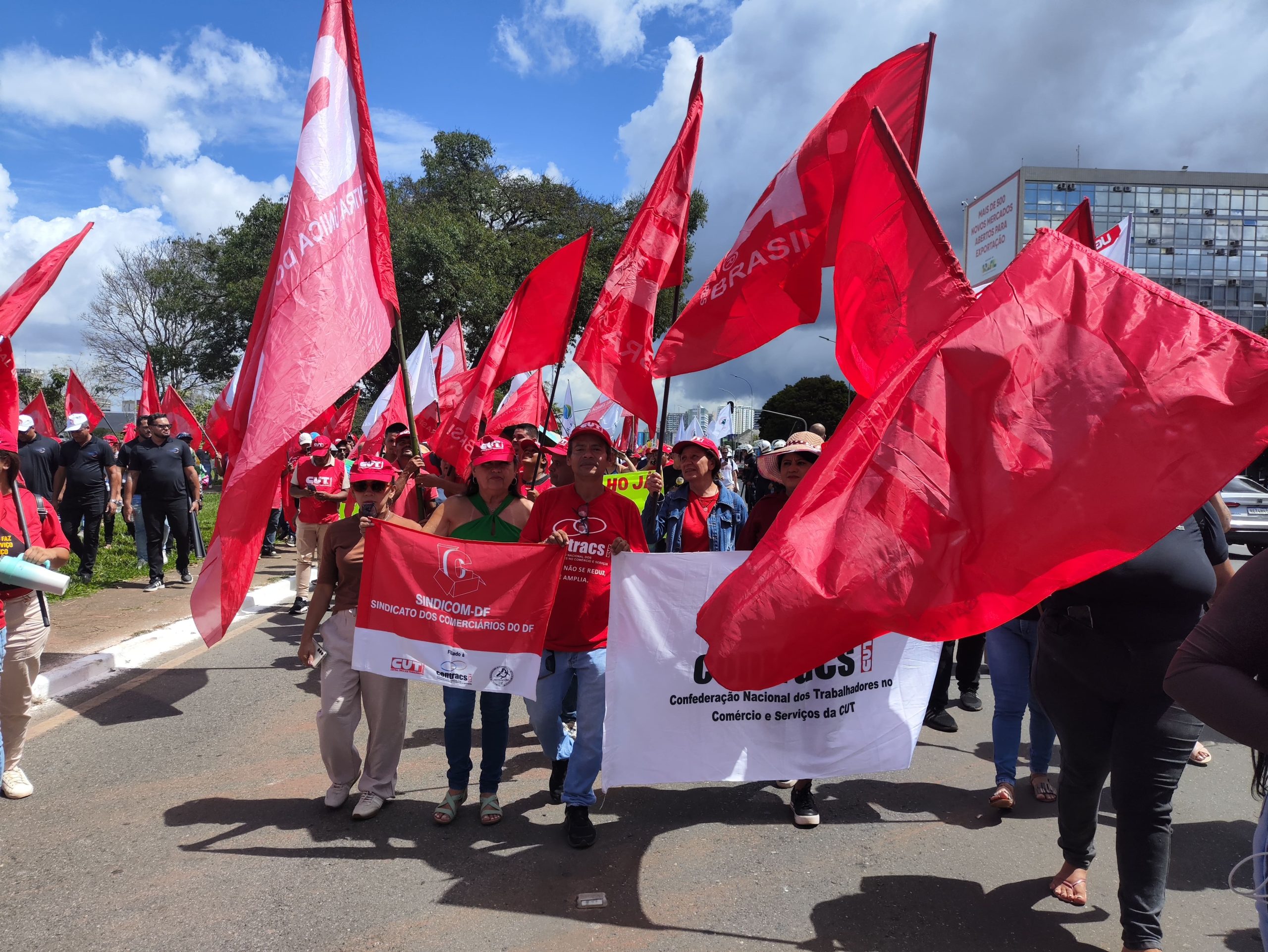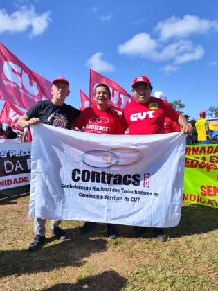 A Contracs-CUT esteve na linha de frente desse grande ato, levando à capital federal uma expressiva delegação de comerciárias, comerciários, trabalhadoras e trabalhadores do setor de serviços de diversas regiões do Brasil. A presença nacional da entidade reforçou a coesão da categoria e a disposição de luta diante das pautas unificadas.